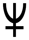 Графический символ Нептуна состоит из креста и полукруга. Он напоминает трезубец — атрибут бога морей Нептуна.