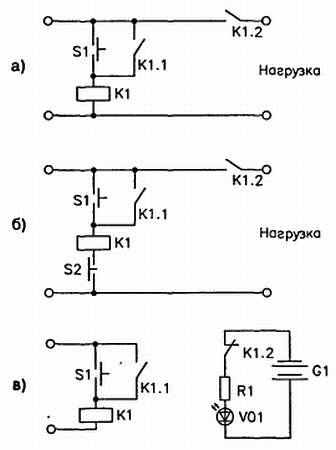 Рис. 1.20. Варианты включения реле с самоблокировкой