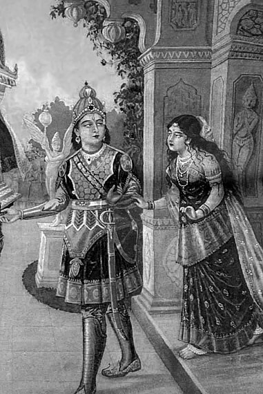 Уттара и Абхиманью, отправляющийся на битву. Сцена из «Махабхараты»