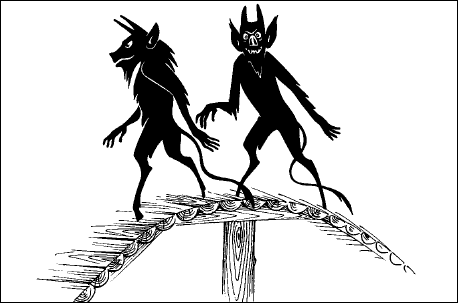 Сделайте меньше образ «тачанка» и снимите с него образ «черт». Расположите на своем «внутреннем экране» отдельно образ «черт» и начинайте образовывать ассоциацию. Возможен следующий вариант: «Черт на клумбе поставил Статую Свободы». Закрепите полученную ассоциацию в памяти.