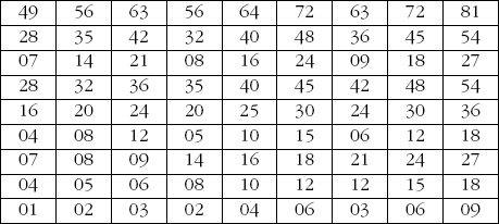 Каждая часть содержит ответы таблицы умножения: 1-я часть – ответы при умножении на 1; 2-я часть ответы при умножении на два, 3-я – на три и таким образом идем дальше. Алгоритм работы с таблицей следующий.