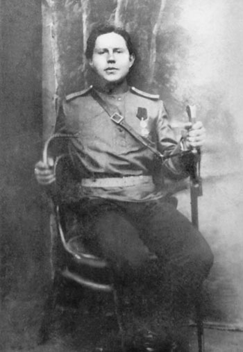 Михаил Сивоволов, из иногородних станицы Каргинской, сочувствовавший большевикам, сподвижник Василия Стороженко. Брат каргинского краеведа Г. Я. Сивоволова, автора книги «”Тихий Дон”: рассказы о прототипах» (Ростов-на-Дону, 1991). Фото 1918 г.