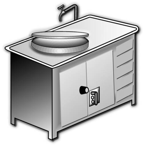 В небольших столовых, где нет возможности для разделения труда и не применяется специализированное оборудование, рабочее место повара – это стол и плита, расположенные на расстоянии не менее 1,5 м друг от друга. Рабочее место повара должно быть оборудовано холодильным шкафом для полуфабрикатов и стеллажом. Необходимо также иметь циферблатные и почтовые весы, разделочные доски, комплекты ножей и другие инструменты, судки со специями и приправами.
