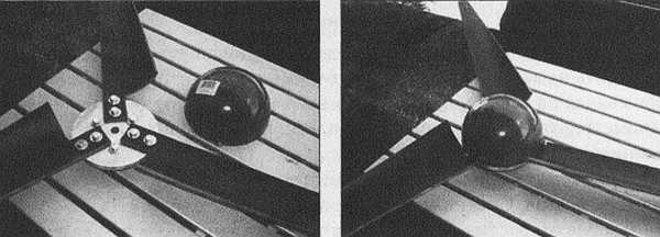 Затем, используя шкурильную машину, снять с лопастей заусенцы и сгладить края, стараясь придать им лучшую аэродинамическую форму. Не знаю, насколько это улучшает их свойства, но уж точно, портит (рис. 1.27, б).