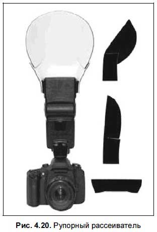 Но как быть в том случае, если под рукой нет подходящего белого потолка? В этом случае фотографы используют различные диффузоры (рис. 4.20, 4.21).