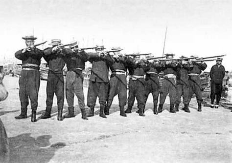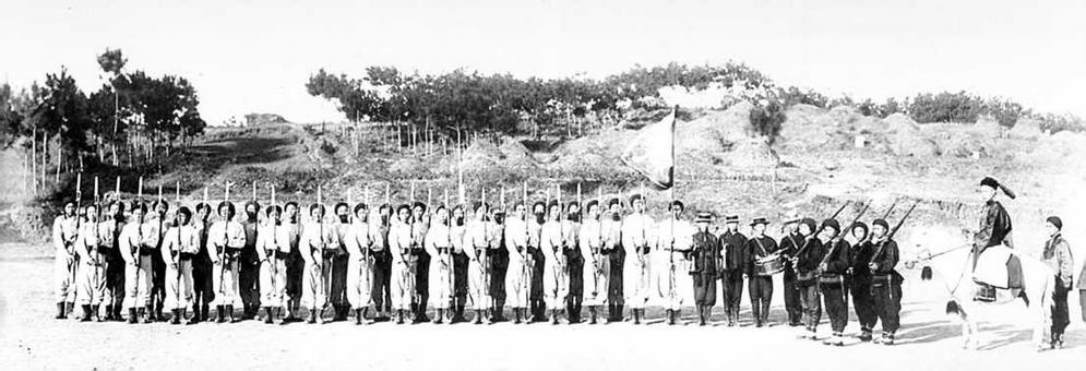 Юань Шикай с личным составом охранного гарнизона в уезде Хэцзэ (????????пров. Шаньдунок. 1900?•