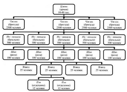 Слева: один из возможных вариантов организационной структуры цинских войск.
