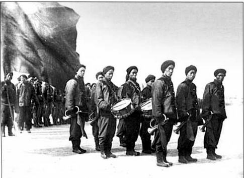Пехота КомплектацияПехота всегда составляла в Китае основную часть вооруженных сил. К 1894 г. пехотные части имелись как в старых Восьмизнаменных и Зеленознаменных войсках, так и новых войсках ляньцзюнь. Если ранее принадлежность к коннице или пехоте являлась наследственной и убылые места замещались преимущественно из числа родственников или детей военнослужащего, то в войсках нового типа комплектация происходила путем вербовки добровольцев за определенную плату. Этот способ комплектации широко распространился в годы Тайпинской войны 1850-1864 гг., когда выяснилось, что войска старого типа совершенно небоеспособны и новые, наемные формирования, гораздо лучше зарекомендовали себя на поле боя.