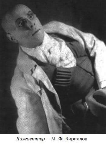 Значительной корректировке Мейерхольду пришлось подвергнуть образ Кизеветтера. Задумывавшийся как еще один двойник Гончаровой юноша-эмигрант не мог остаться поэтическим, вызывающим сочувствие персонажем. Его последовательно превращали в «фашиста». Отклики по поводу этой работы были противоречивы, что свидетельствует, скорее всего, о том, что видели разных Кизеветтеров на разных этапах перестройки образа (возможно, речь шла и о разных актерах: первоначально роль Кизеветтера репетировал И. А. Ключарев, а на премьере играл М. Ф. Кириллов).
