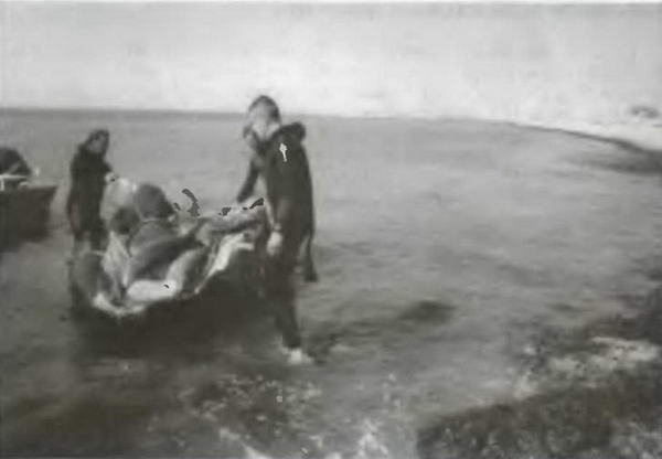 ...Пьяные, возбужденные от охоты люди втаскивали на берег лодку, в которой лежали несколько дельфинов. Тряпкой открывали роструп — нос, вставляли катетер под красный язык и вливали раствор тазепама. Дельфины тяжело дышали. Подошли мальчик и девочка, и стали их поглаживать, поливать водой. Тело дельфина должно быть постоянно влажным - иначе тепловой удар, страшные язвы...