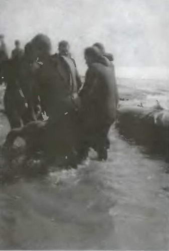 «Вон у косы еще один, — сообщает смотровой в бинокльс грузовика. — Одевайтесь».