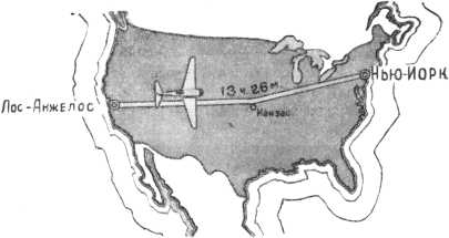 Маршрут пилота Хэукса в 1933 г. из Лос-Анжелоса в Нью-Йорк. В продолжение всего пути самолетом управлял робот (автопилот).
