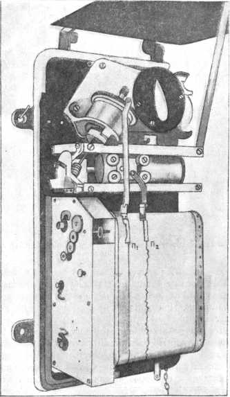 На самом верху тумбы установлен компас-репитер, соединенный с гирокомпасом и повторяющий все его движения. Открыв заднюю стенку тумбы, мы найдем внутри несколько электрических приборов и два электромотора: один совсем маленький, другой побольше — мощностью в четверть лошадиной силы. Первый электромотор-репитер электрически соединен с гирокомпасом. На него как раз и возложена задача управлять рулевой паровой машиной через штурвал. Сам электромоторчик-репитер для этого слаб, и ему в помощь приставлен второй мотор, соединенный со штурвалом.