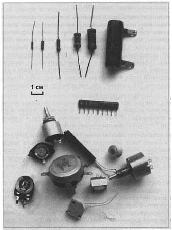 Два слова о номинальной мощности резисторов. Резисторы с гибкими выводами выпускаются следующих предельно допустимых мощностей: 0,0625, 0,125, 0,25, 0,5, 1 и 2 Вт, которые отличаются размерами (см. рис. 5.1, вверху).