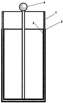1 — стеклянный стакан; 2 — внешняя обкладка из станиоля; 3 — внутренняя обкладка; 4 — контакт для заряда