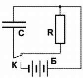 К — переключатель, Б — батарея, С — конденсатор; R — сопротивление нагрузки