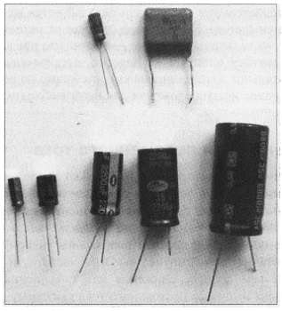Для использования в других областях применяют конденсаторы с неполярным диэлектриком: бумажные, слюдяные, керамические, полиэтилентерефталатные (лавсановые) или фторопластовые (тефлоновые). Емкость их (в соотношении емкость/габариты) значительно меньше, и номинальная емкость обычно не превышает нескольких микрофарад (сравнительные размеры конденсаторов показаны на рис. 5.8).