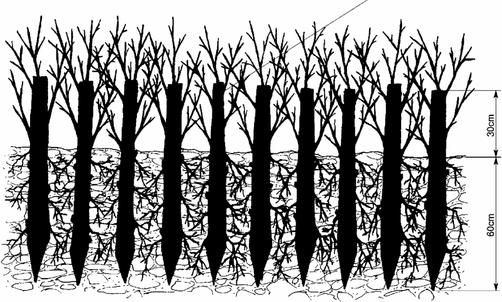• повышение кустистости кустарников (посадка на пень, укоренение побегов);