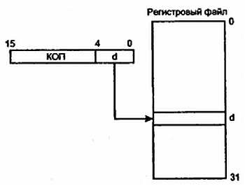 n — адрес регистра, используемого в операции, находится непосредственно в коде команды, в битах 0…5.