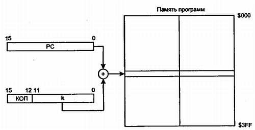 После операций RJMP или RCALL выполнение программы продолжается с адреса РС+k+1. Относительный адрес к может составлять от -2048 до 2047.