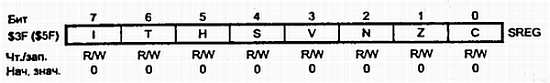 Регистр состояния расположен по адресу $3F ($5F) пространства ввода/вывода и определен следующим образом: