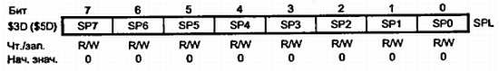 Этот 8-разрядный регистр с адресом $3D ($5D) хранит указатель стека процессора AT90S2313. Восьми разрядов достаточно для адресации ОЗУ в пределах $60 — $DF.