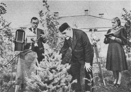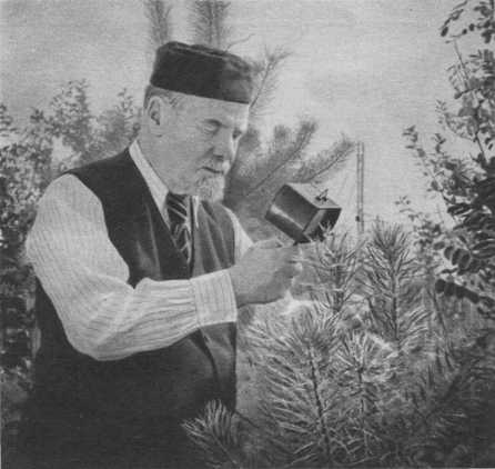 Профессор Г. А. Тихов в «астроботаническом» саду в Алма-Ате.