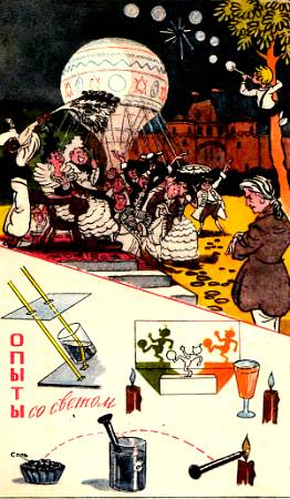 Поставьте перед одной из свечей рюмку с подкрашенной красной краской водой. К нашему удивлению, тень фигурки, отбрасываемая этой свечой, покажется нам зеленовато-голубой.