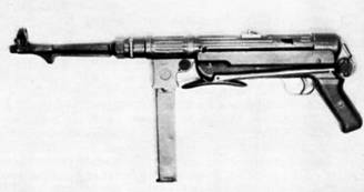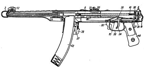 Название характеристики Пистолет- пулемет Судаева обр. 1943 г. СССР Пистолет- пулемет Шпагина обр. 1941 г. СССР Пистолет- пулемет МР — 38 обр. 1938 г Германия Калибр, мм 7,62 7,62 9 Масса (без патронов), кг 3,0 3,6 4,2 Масса со снаряженным магазином, кг 3,7 5,4/4,3* Масса снаряженного магазина, кг 0,67 1,8 /0,67* Длина, мм 820/620** 840 830/630** Начальная скорость пули, м/с 500 500 390 Прицельная дальность, м 200 300/500 200 Темп стрельбы, выстр./мин 600 1 000 Боевая скорострельность, выстр./мин. 100-120 100- 120 80-90 Емкость магазина, патр. 35 71/35* 32 Масса патрона, г 10,8 10,8 10,6 Масса пули, г 5,52 5,52 7,4 Год принятия на вооружение 1943 1941 1938Примечания: