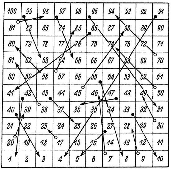 Доску вырезают в виде квадрата из листа картона, желательно большого размера. Квадрат надо разграфить на 10 ? 10 клеток. В клетках расставляют числа от 1 до 100, как показано на нашем уменьшенном рисунке.