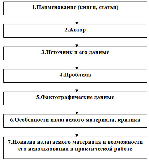 Первые четыре блока алгоритма пояснения не требуют. Пятый блок — фактографические данные — означает извлечение из текста фактов и их смысловое усвоение. Шестой и седьмой блоки предполагают учет индивидуальных особенностей читателя: его знаний, опыта, цели чтения. Например, то, что одному читателю кажется тривиальным, другому, менее опытному, — новым, а критически настроенному — спорным. Таким образом, оба эти блока предполагают активное участие читателя в выполнении сложных аналитико-синтетических мыслительных действий в процессе чтения.