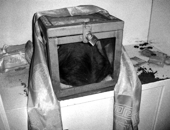 Наиболее осязаемый «объект животного происхождения» хранится в монастыре Тхьянгбоче. Это так называемый скальп йети. Ральф Иззард упоминает многих людей, которые видели его и не нашли ни одного шва, что является доказательством подлинности. Лама не хочет расставаться с ним, что вполне понятно, но особо почетным посетителям его показывают. В 1953 г. монастырь осматривал Навнит Парекх из Бомбейского общества естественной истории и был удостоен чести быть подведенным к скальпу. Воспользовавшись расположением старого ламы, Парекх не преминул выдернуть пару волос из скальпа которые он срочно отослал в Бвунсвик, штат Нью-Йорк, другу Леону Хаусмэну – для осмотра и идентификации. Доктор Хаусмэн склонен думать, что «скальп» – шапка, сделанная из меха с плеч или задней части крупного млекопитающего. Пряди волос не принадлежат ни обезьяне лан-гуру, ни медведю и ни одному из возможных родственников. Пряди очень старые, их возраст может исчисляться столетиями.