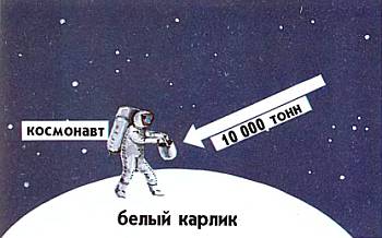 Если бы космонавт мог опуститься на белый карлик и взять ведро его вещества, то в руке он держал бы массу около 10 000 тонн.