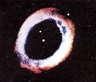 Туманность в созвездии Лира. Это последний этап жизни звезды, подобной Солнцу. Она сбросила оболочку, и в центре виден белый карлик, состоящий из сверхплотного вещества.