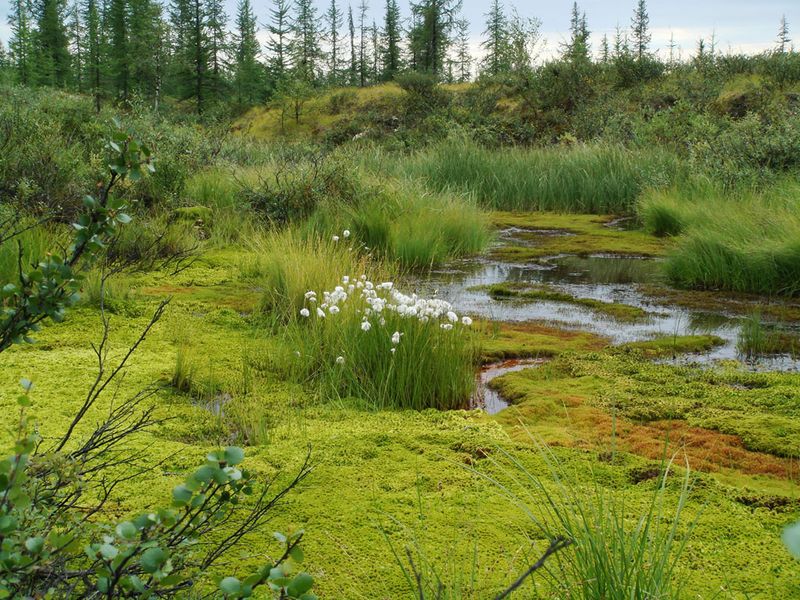 Еще где-то через час прогулки между блестящих луж и обросших мхом валунов, мы вышли на поляну.