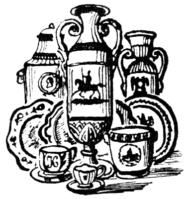 Уже начиналось революционное движение, когда завод выпускал эту посуду. Старый крепостной строй трещал по всем швам. Николай I старался поддержать крепостной строй силой пушек и штыков. Он только и думал о выправке своих солдат. Он пил из военных чашек, ел на военных тарелках. В Зимнем дворце по углам стояли военные вазы, словно несли караул.