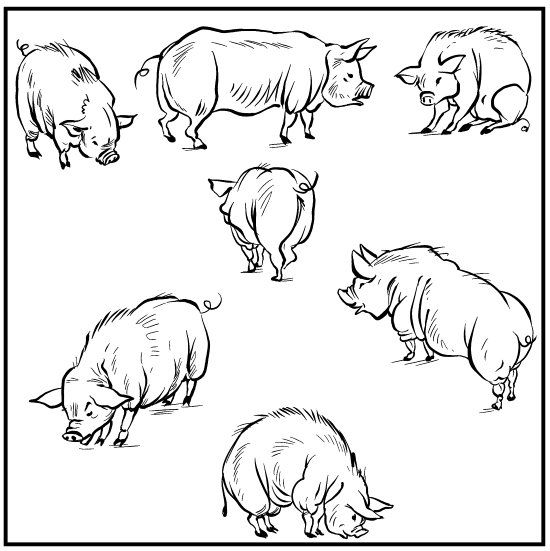 Прилагаемый рисунок требуется разрезать тремя прямыми линиями на шесть участков так, чтобы на каждом участке было по целому животному.