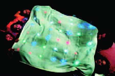СВЕТЯЩЕЕСЯ ОДЕЯЛО демонстрируется в Лондонском музее науки. Это электрическое покрывало мерцает в темноте мягкими разноцветными огоньками, причем светящийся узор меняется всякий раз, когда человек под одеялом начинает шевелиться. По мнению изобретателя Дж. Макадама, такое одеяло поможет засыпать детям, которые боятся темноты.