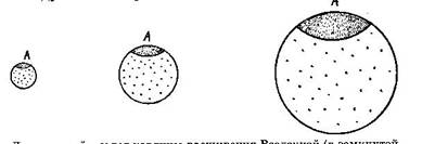 Двухмерный аналог картины расширения вселенной (в замкнутой модели)