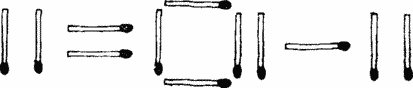 А вот еще один вариант той же головоломки. Его решение требует иной догадки. Спички сложены так же, как и прежде. На этот раз требуется взять 20 спичек так, чтобы осталось 8. Решение — цифра 8 — выглядит так: