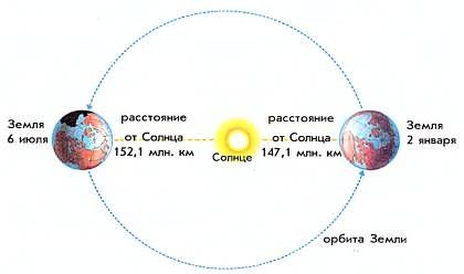 Расстояние между Землей и Солнцем не остается неизменным. За год Земля совершает один оборот вокруг Солнца,