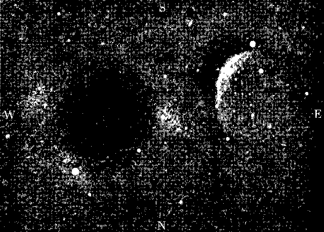 Подобное же отверстие, — продолжает сам Клейн, — находится на 2 градуса к северу от звезды ? в Стрельце; оно было найдено и зарисовано Трувело в 1876 году. Это настоящее чёрное пятно в Млечном Пути и оно производит приблизительно такое впечатление, как будто там перед блестящим звёздным фоном стоит какой?то неправильно круговой формы, на краях размытый, чёрный предмет. Четыре довольно ярких звезды, из которых самая яркая оранжевого цвета, стоят у северо — западного края чёрного пятна, три другие более слабые — у восточного. Вокруг сияет Млечный Путь. Очень близко находится серпообразное чёрное пятно, далеко не так выдающееся, как предыдущее, но всё же ясно выделяющееся на светлом фоне. Эти чёрные беззвёздные пространства весьма замечательны и непонятны.