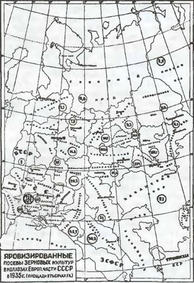 Фальсифицированная схема размещения яровизированных зерновых культур, с помощью которой лысенкавцы демонстрировали свои успехи