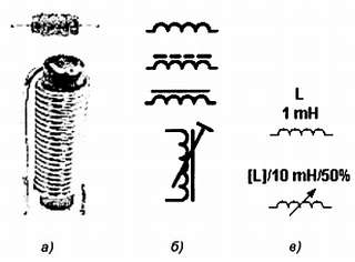 В катушках индуктивности электромагнитная энергия запасается в виде магнитного поля, концентрирующегося внутри катушки. Индуктивность зависит от числа витков и общей геометрии катушки (рис. 6).