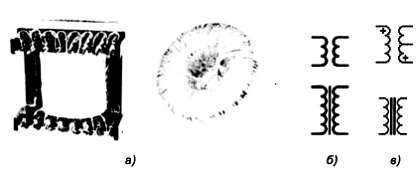 В зависимости от отношения числа витков первичной и вторичной обмоток, которое называется коэффициентом трансформации, могут встретиться три случая. Величина наведенной ЭДС может быть меньше первичного напряжения — понижающий трансформатор (число витков первичной обмотки больше, чем вторичной), больше его — повышающий трансформатор (обратное соотношение числа витков) и, в частном случае, равна ему — разделительный трансформатор. По назначению и в зависимости от конструктивных особенностей различают трансформаторы: силовые, согласующие, выходные, импульсные, измерительные и др. (рис. 8).