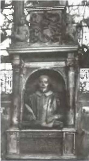 Бюст Шекспира в Стратфордском храме (с пером).