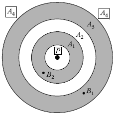 Рис. 2.2. Модель размещения промышленного производства (по А. Веберу): Р – транспортный пункт; В1 В2 – рабочие пункты; А1, А2, А3, А4 – изодапаны
