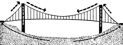 Рис. 10. Растяжение в тросах балансируется сжатием в грунте