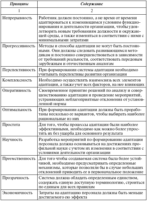 При управлении процессом адаптации необходимо учитывать ряд принципов (табл. 5.31).