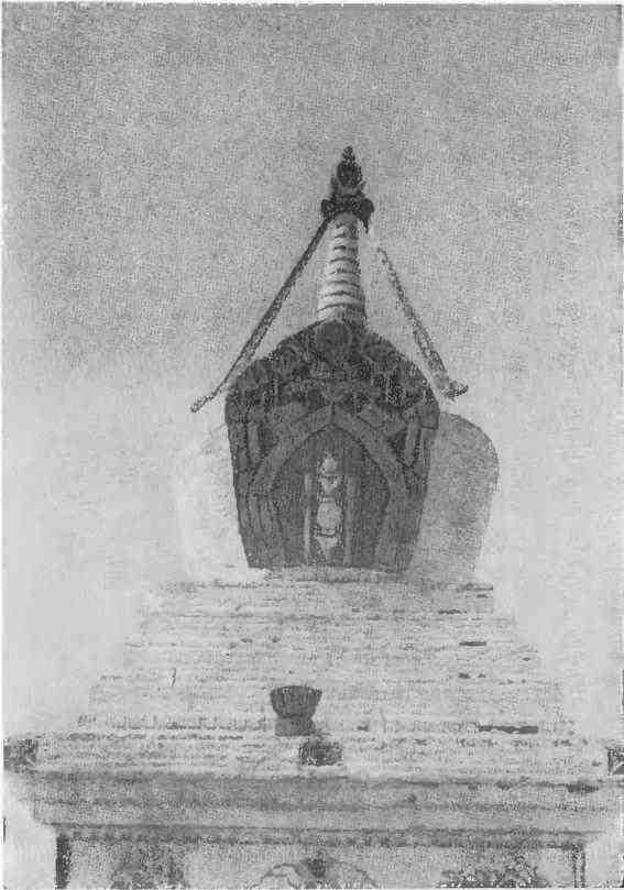 Посередине огромного четырехугольного двора стоит высокая белая с золотом пирамида — Золотой Субурган. Собственно говоря, такие пирамиды выполняют у буддистов ту же функцию, что и крест у христиан. Где бы ни жили буддисты, можно найти такие пирамиды, от самых маленьких из глины до колоссальных каменных сооружений высотой чуть не с гору. Храмы ими переполнены; сделанные из простых, а иногда из благородных металлов и драгоценных камней пирамидки (чаще их изготовляют из более дешевых материалов) встречаются в кочевых юртах и постоянных жилищах верующих. Возведение таких сооружений считалось священной обязанностью верующих буддистов, и богачи соперничали между собой, кто построит пирамиду побольше и покрасивее. Сооружение субурганов началось с очень древних времен. Упоминания о тих можно найти в «Притчах о мудрецах и глупцах». Текст этих притч примерно в VI веке нашей эры был переведен с тибетского языка на монгольский, а еще раньше с китайского на тибетский. Но и китайский текст в свою очередь был переведен с одного из языков Центральной Азии. Первоисточник надо искать в Индии, хотя оригинальный санскритский текст утерян. Вот что рассказывается в «Притчах»: